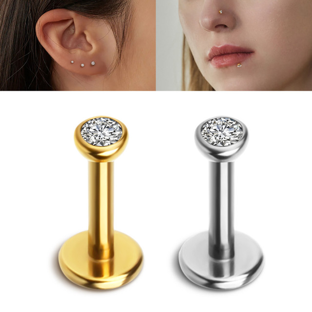 Piercing Labret Ponto De Luz Titânio Zircônia | Helix, Tragus, Conch, Nariz, Boca-Medusa Nostril Brinco Piercing Trágus