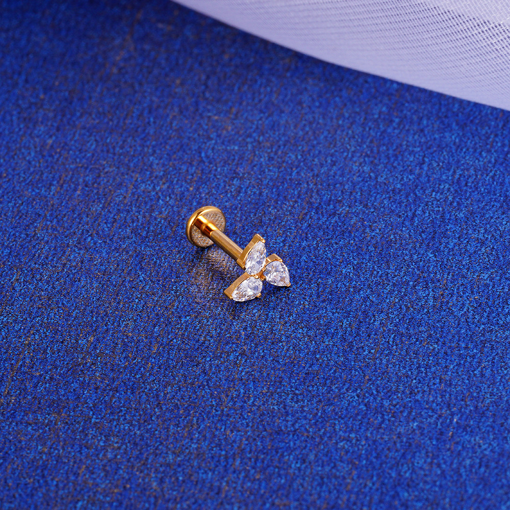 Piercing Labret Titânio 3 Zirconias Cravejada - Helix, Orelha, Flat, Conch, Tragus, Lóbulo, Ponto de Luz e outros