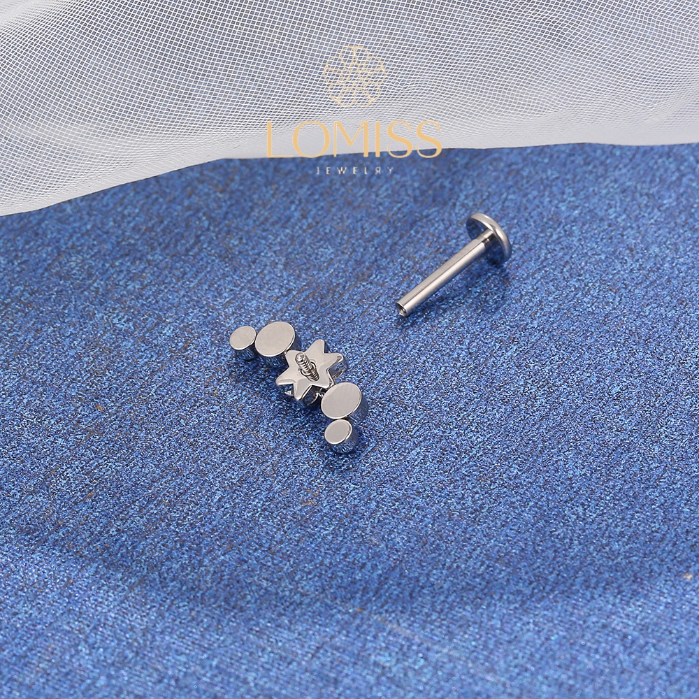 Piercing Labret Titânio Cluster de Flores com 11 Zircônias《Lomiss semijoias》