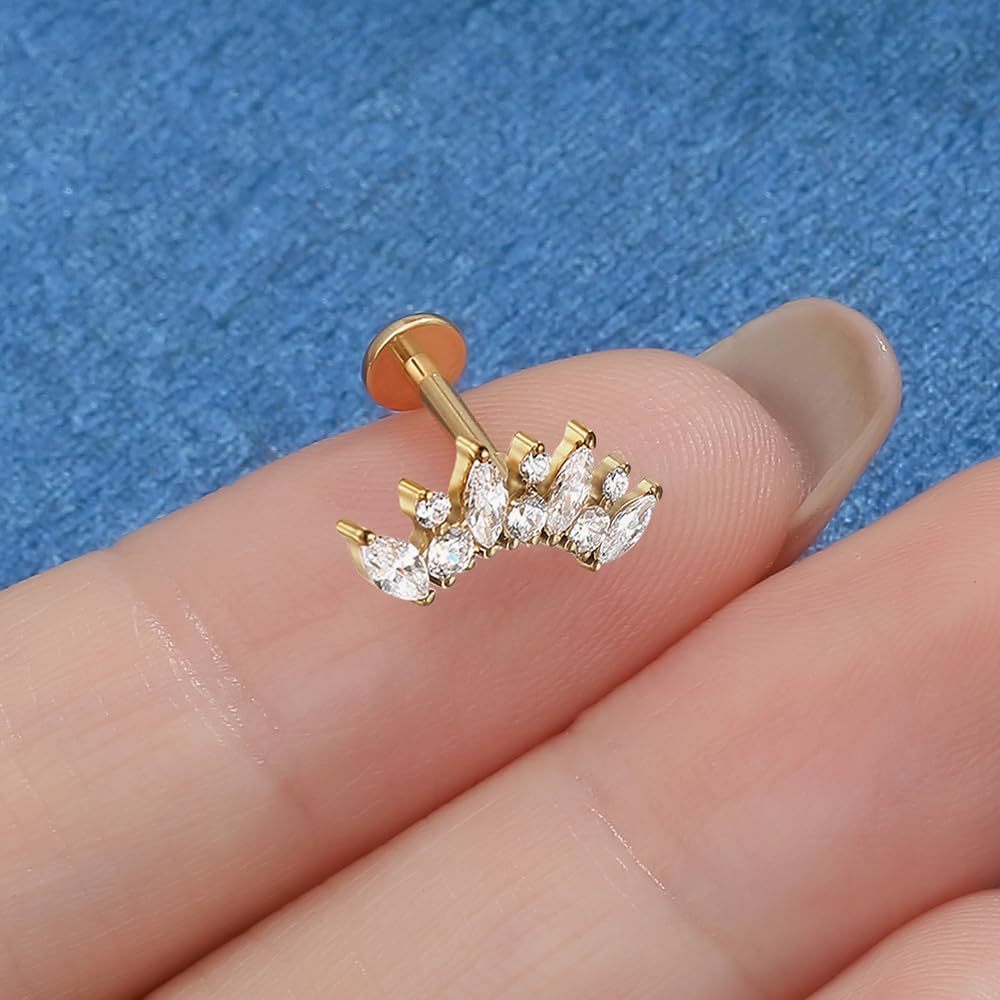 Piercing Labret Titânio Cluster Zircônias Cravejada | Helix, Tragus, Conch, Nariz e Outros