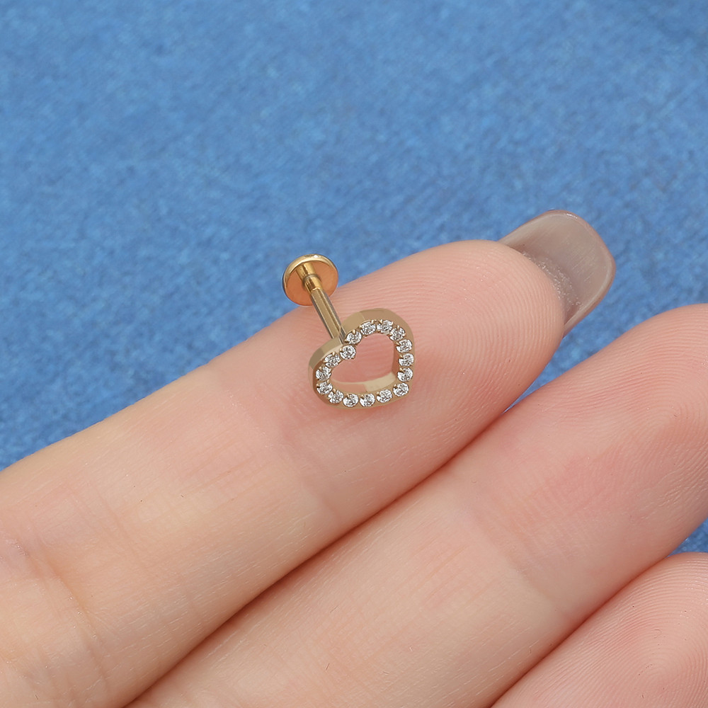 Piercing Labret Titânio Coração Vazado Zircônia Helix Tragus Conch Nariz Earring Piercing Coracao