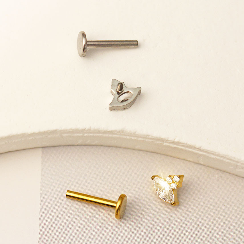 Piercing Labret Titânio Estrela Com 4 Zircônias Cravejada Para Orelha Helix Tragus Conch Lábio Cartilagem Nariz Boca