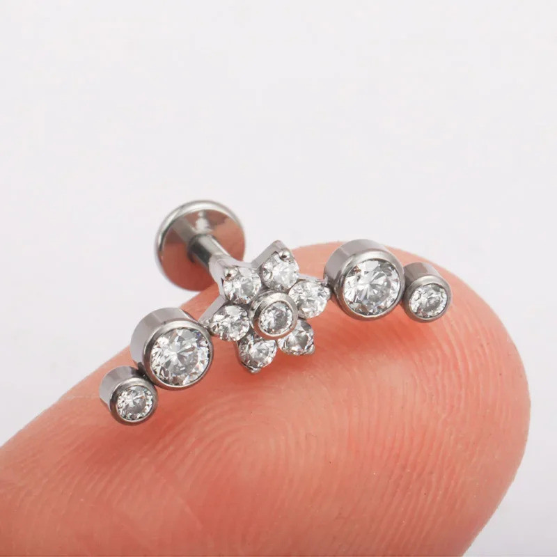 Piercing Labret Titânio Flor / Helix Tragus Conch, de Boca Lateral Piercing Orelha Daith