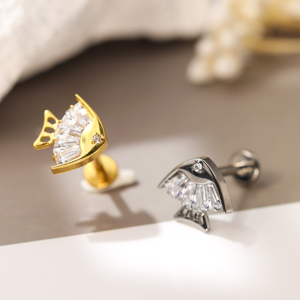 Piercing Labret Titânio Helix Nariz Tragus Orelha Peixe Com Zircônia Cravajada