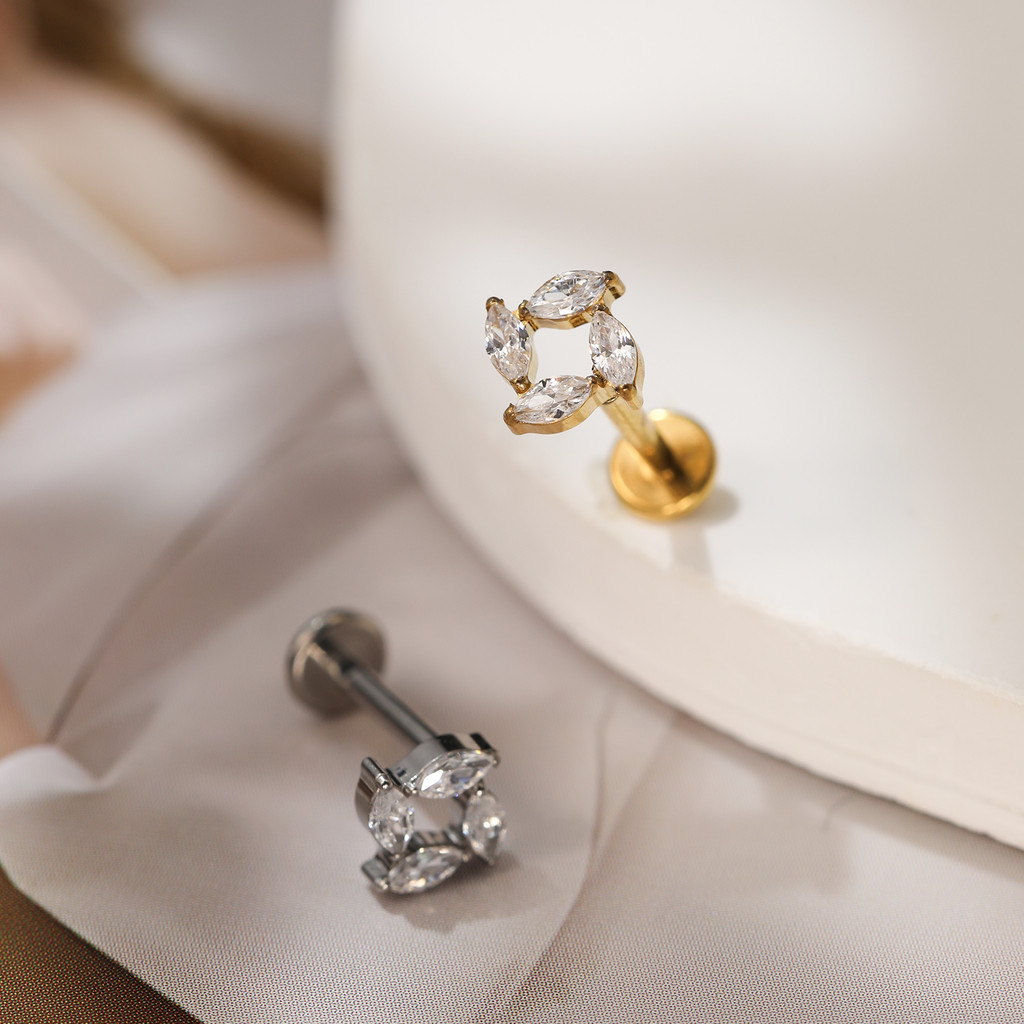 Piercing Labret Titânio Helix Tragus Conch 4 Pedras Zircônia Cravejada