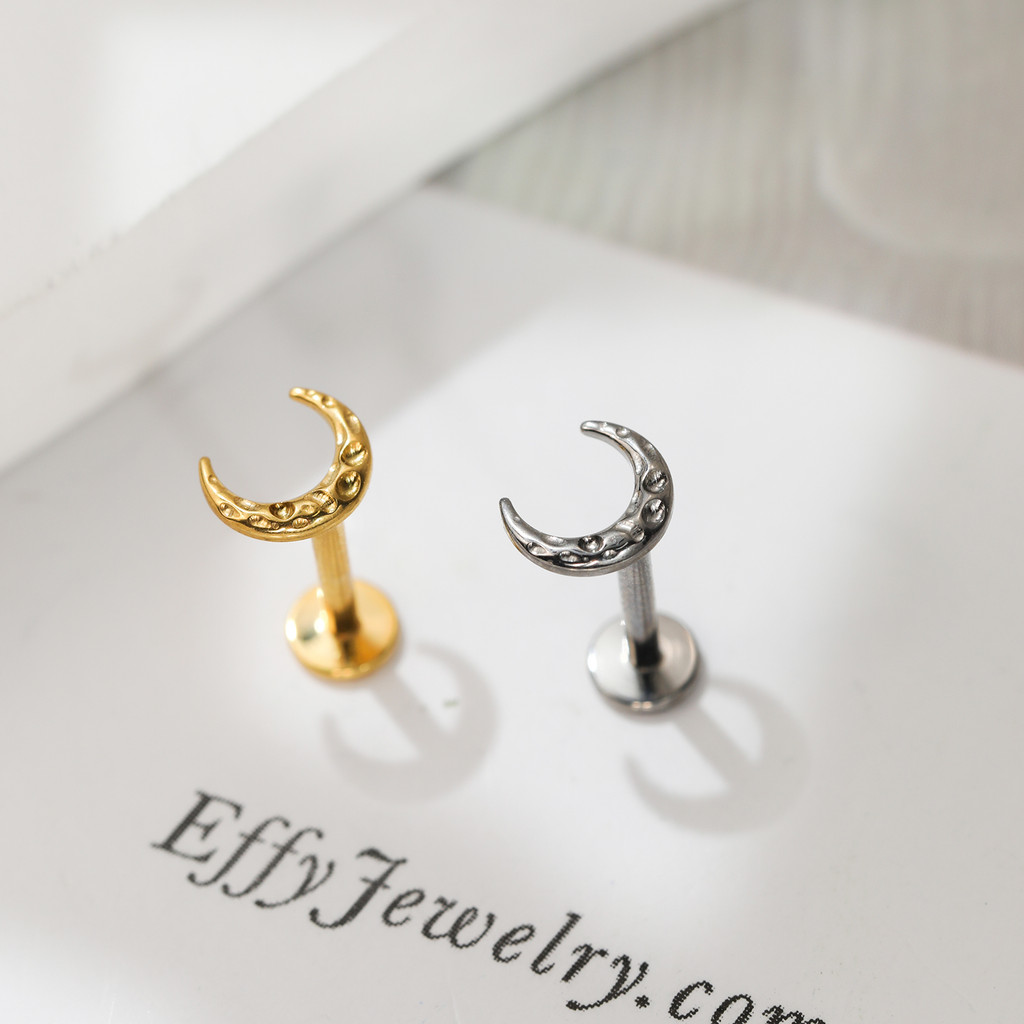 Piercing Labret Titânio Helix Tragus Conch Lua Detalhada