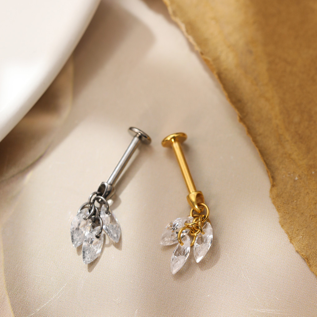 Piercing Labret Titânio Helix Tragus Conch Nariz Com 3 Pingentes Zircônia