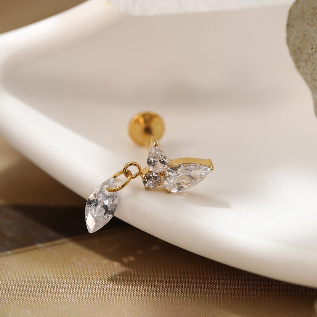 Piercing Labret Titânio Helix Tragus Conch Nariz Zircónia Cravejada Com Pingente