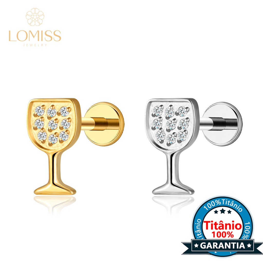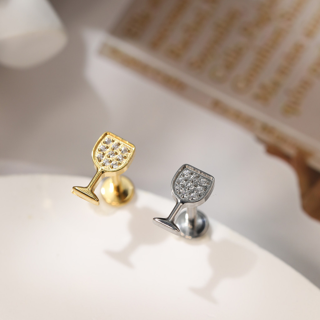 Piercing Labret Titânio Helix Tragus Conch Taça De Vinho Com Zircônia Cravejada