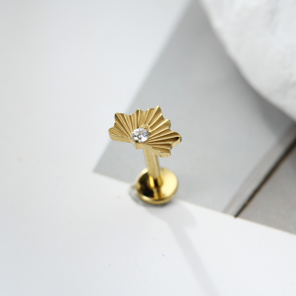 Piercing Labret Titânio Meia Flor Zircônia Cravejada Orelha Tragus Conch Helix Nariz Earring