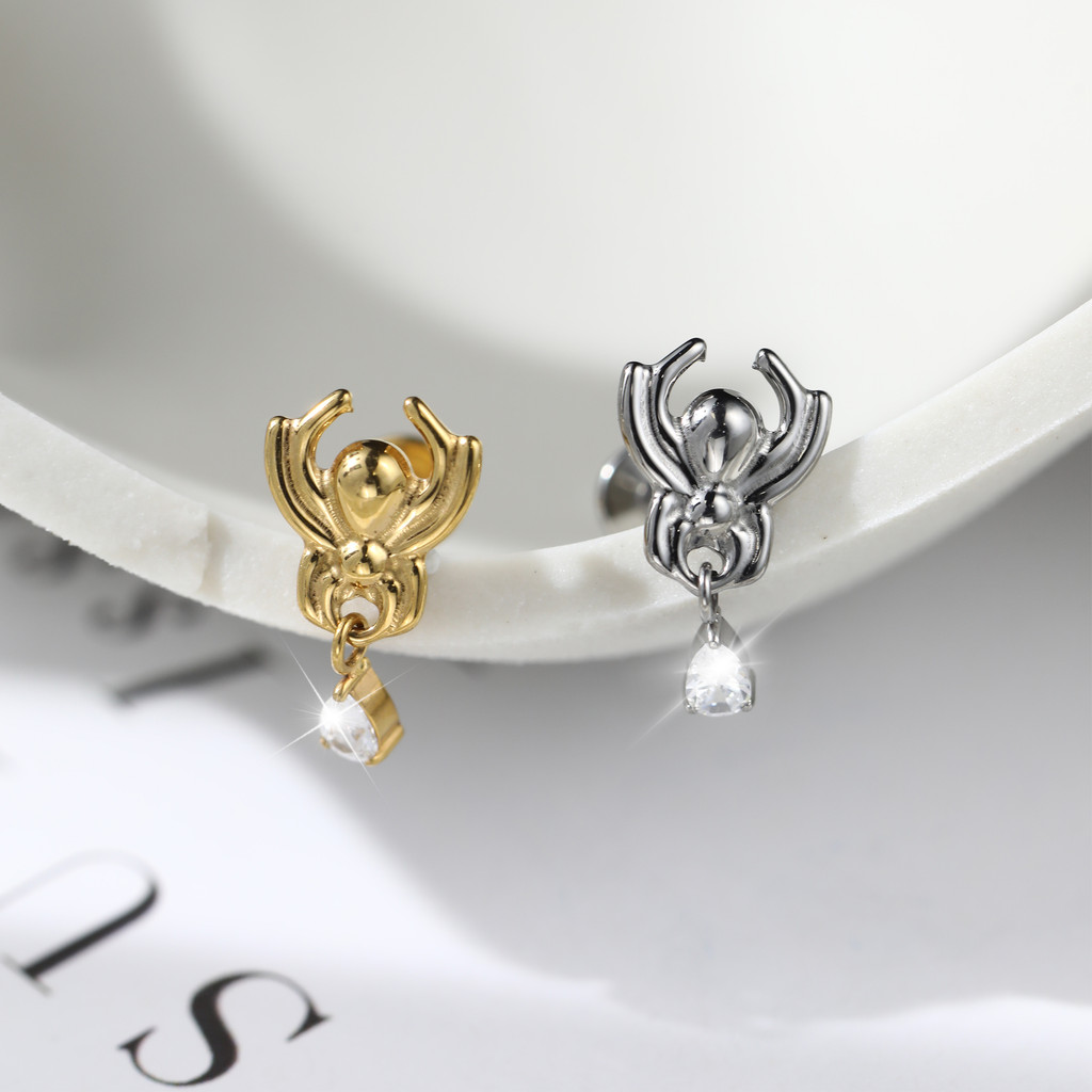 Piercing Labret Titânio Pvd Aranha Com Pingente Zircônia Tragus Helix Boca Orelha
