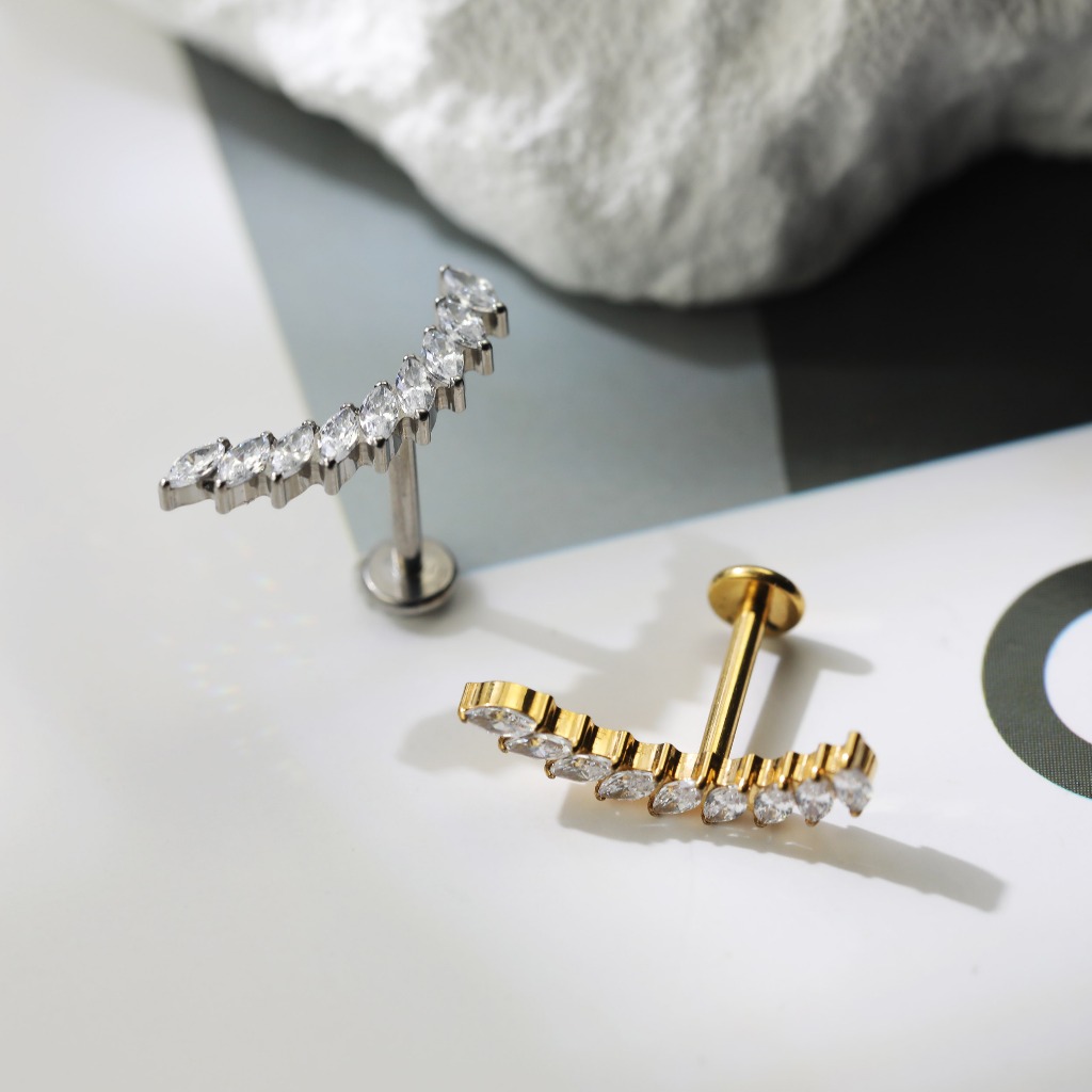 Piercing Labret Titânio Pvd Cluster Zircônia Cravejada Helix Tragus Conch Nariz