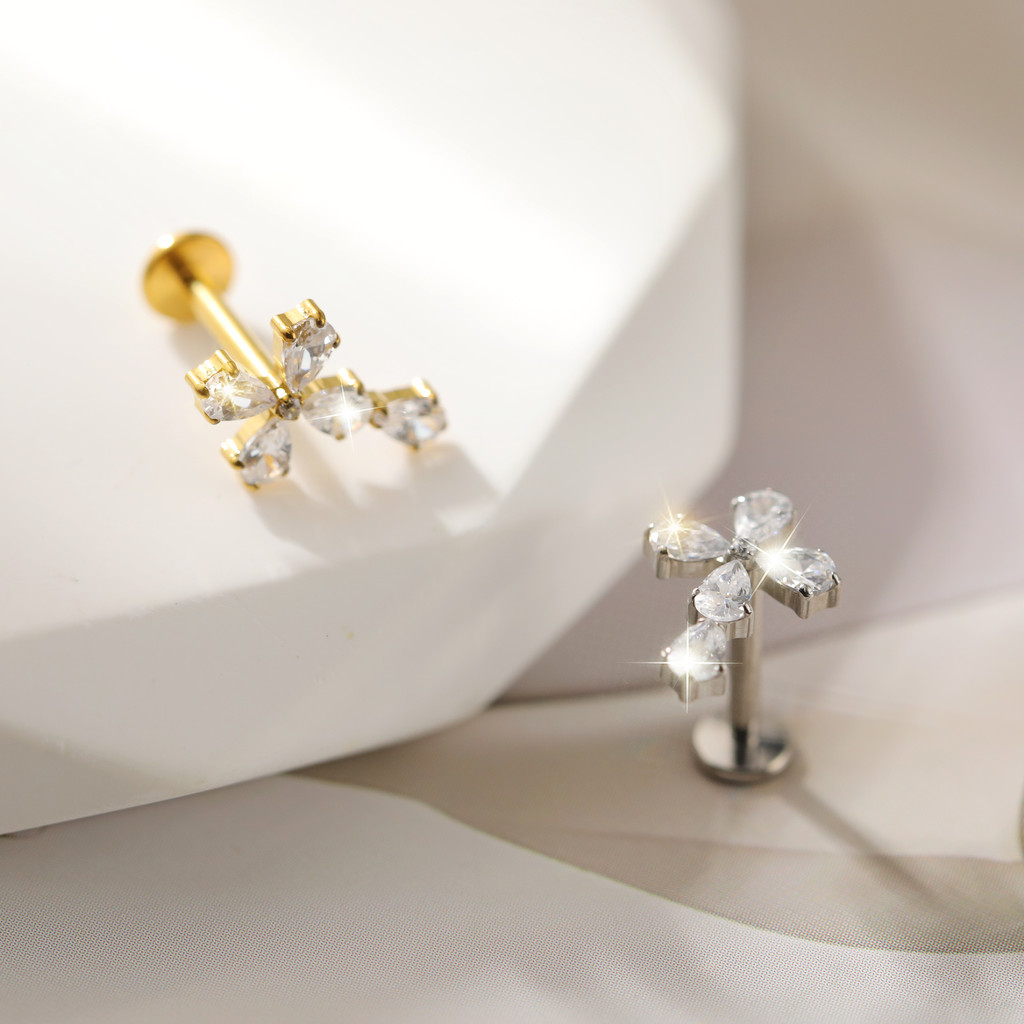 Piercing Labret Titânio Pvd Cruz Zircônia Ponto De Luz Nariz Orelha Helix Tragus Conch Nostril Brinco Piercing Trágus