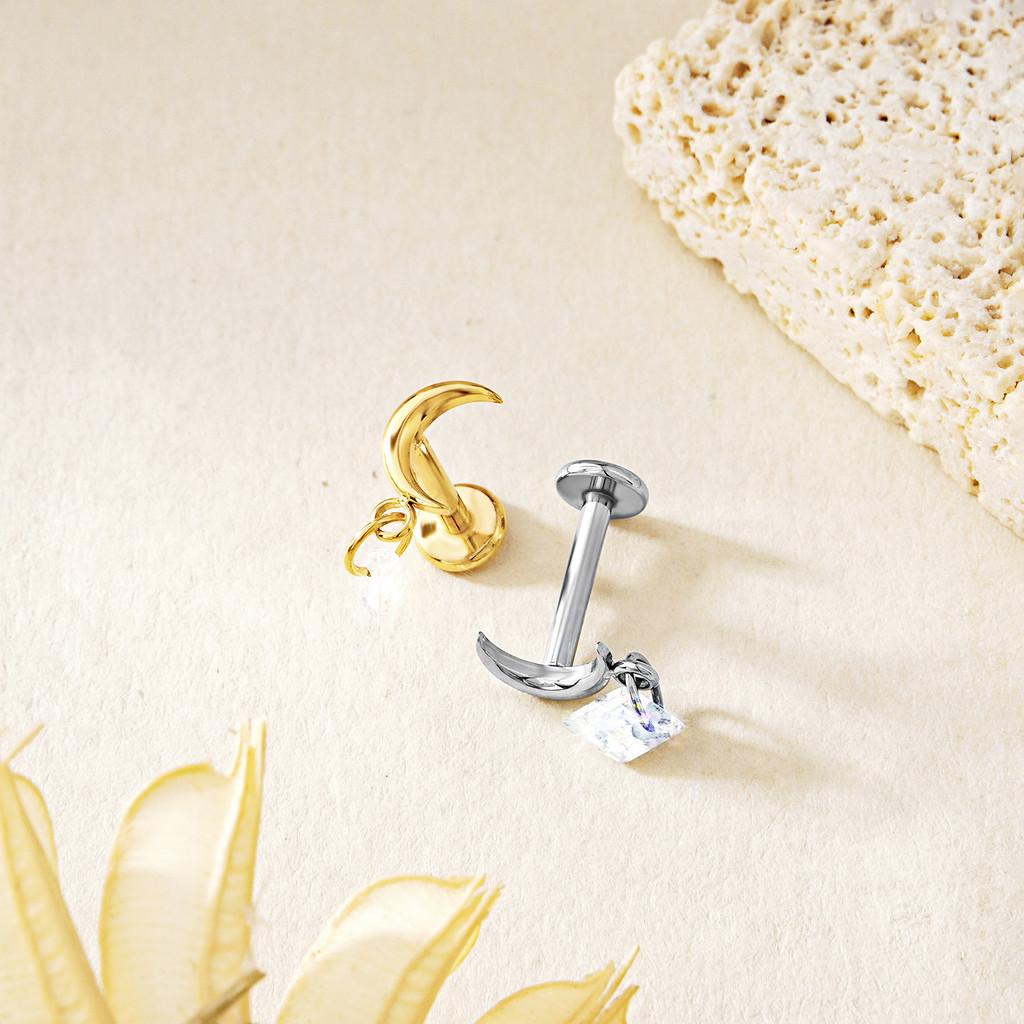 Piercing Labret Titânio Pvd Lua Com Pingente Deltoid Zircônia Para Orelha Helix Tragus Conch Nariz Labret Lateral