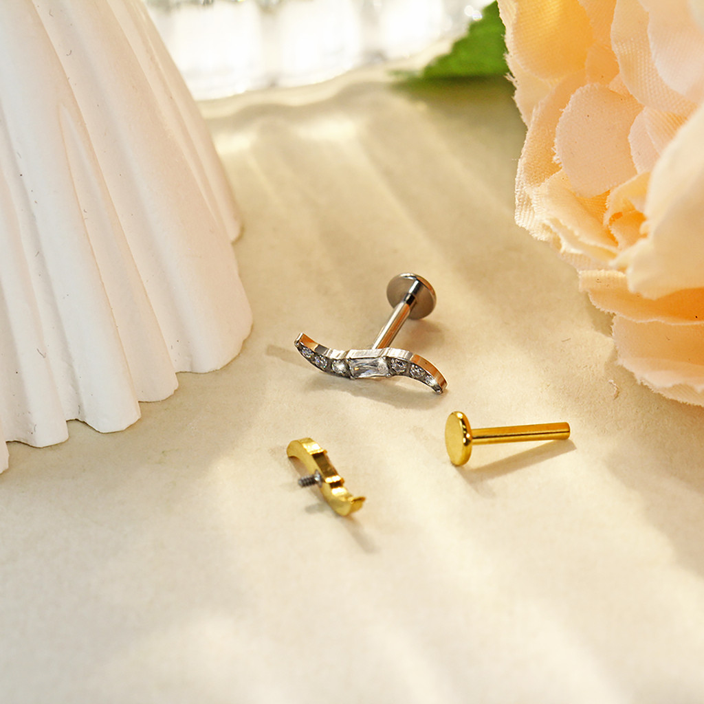 Piercing Labret Titânio Zircônia Onda / Cobra Rosca Interna - Flat Boca Tragus Helix Nariz Conch Lóbulo Lateral