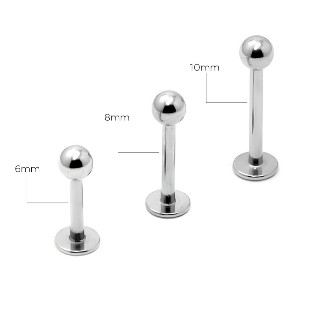 Piercing Labret Boca em Aço Cirúrgico Preto ou Prata Modelo Bolinha *** VALOR UNITÁRIO - Material - Aço Cirúrgico Antialérgico - Tamanho da haste: 6mm, 8mm ou 10mm - Espessura da haste: 1.2mm - Tamanho da bolinha: 3mm - Bolinha rosqueável, rosca externa - Cores: Prata ou Preto PVD ** Preto PVD (deposição física a vapor), não descasca e não perde a cor Piercing de ótima qualidade, ideal para primeira perfuração ou atualização. Feito com materiais hipoalergénicos, proporcionando conforto, segurança e estilo.