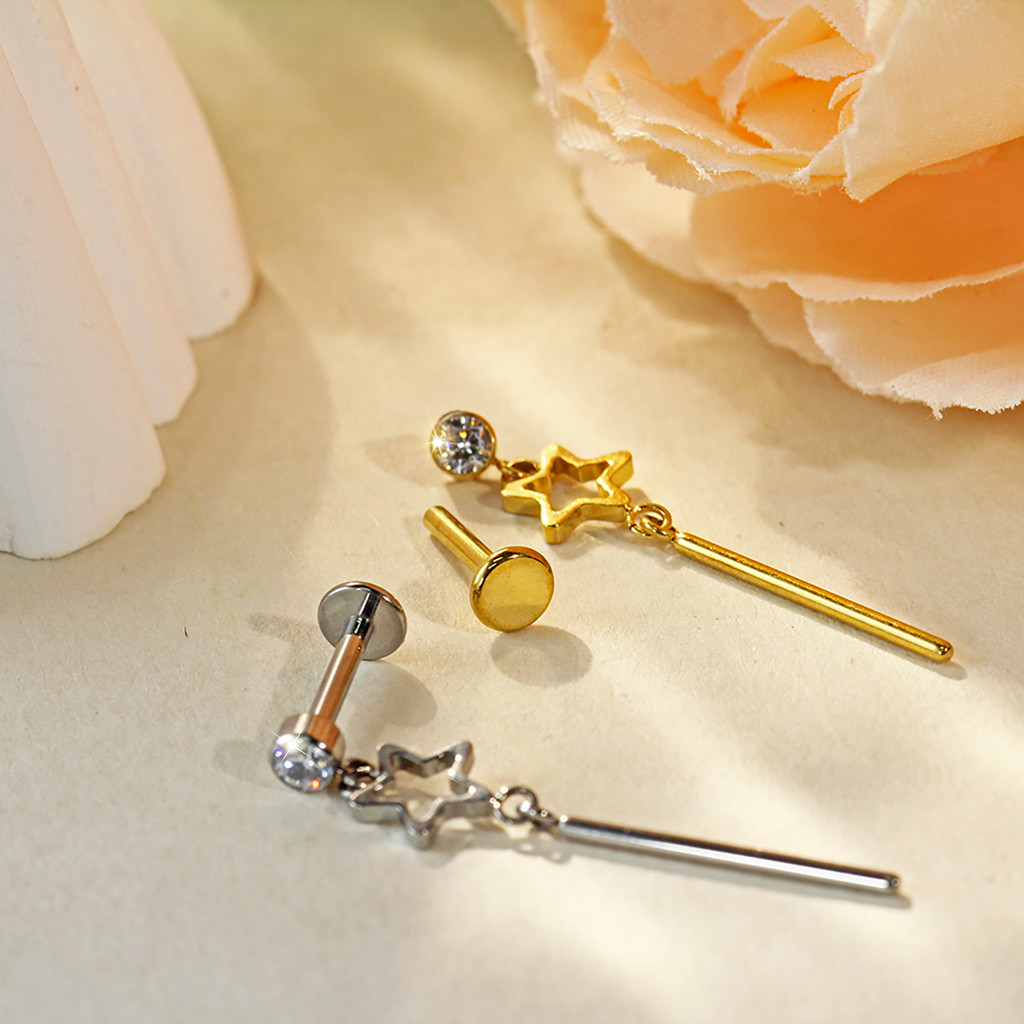 Piercing Labret Tragus Titânio Com Pingente Estrela Zircônia | Rosca Interna Boca Helix Nariz Flat Conch Lóbulo