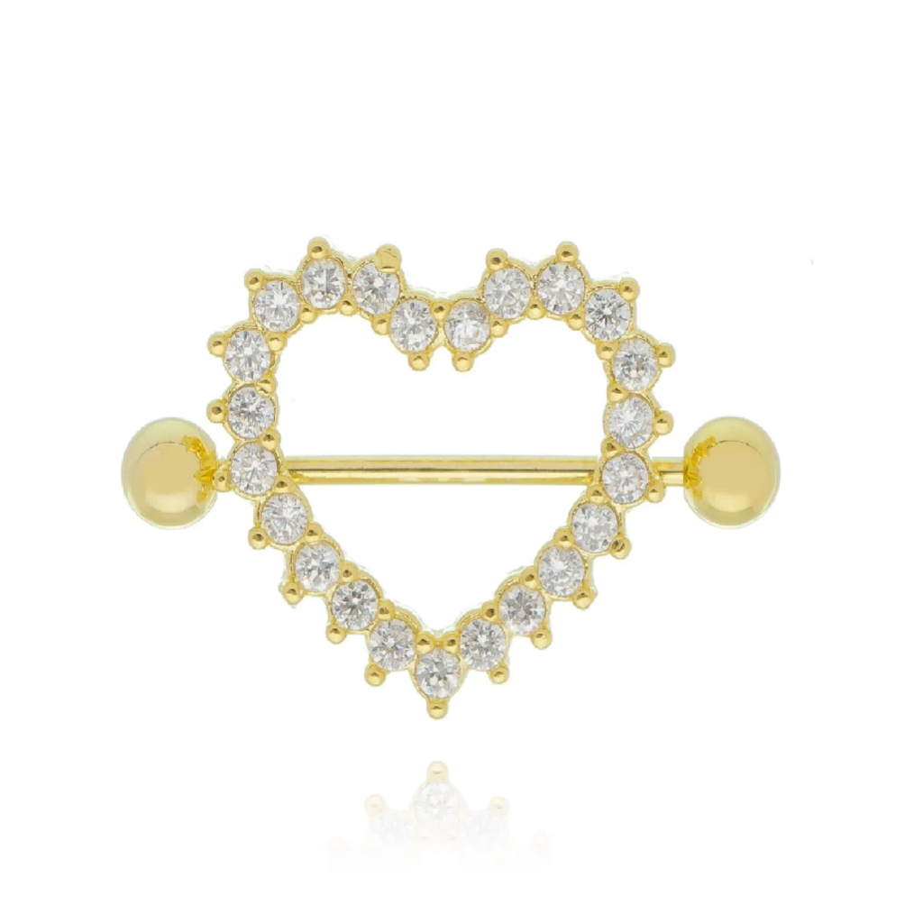 Piercing Mamilo Modelos Coraçao Cravejado Aço Cirurgico / dourado