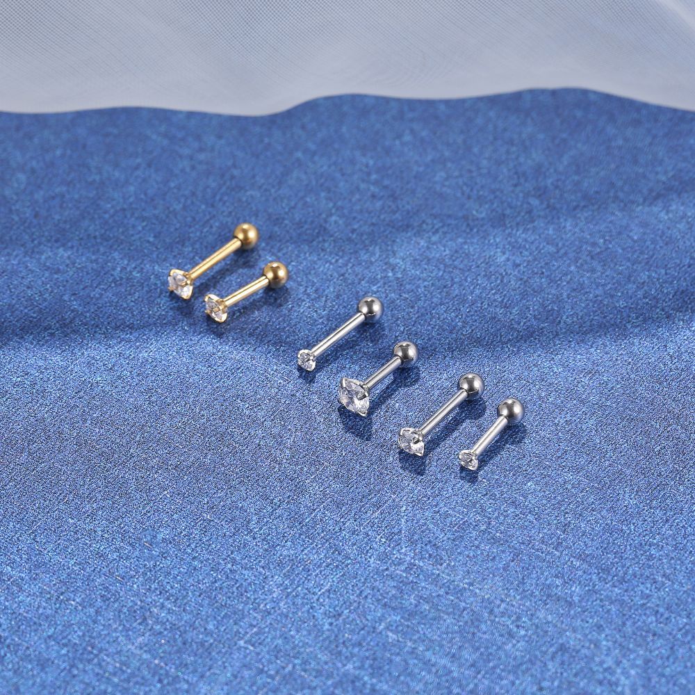 Piercing Microbell Reto Aço Cirúrgico Zircônia Cravejada Redonda Helix Flat Conch Tragus Lóbulo