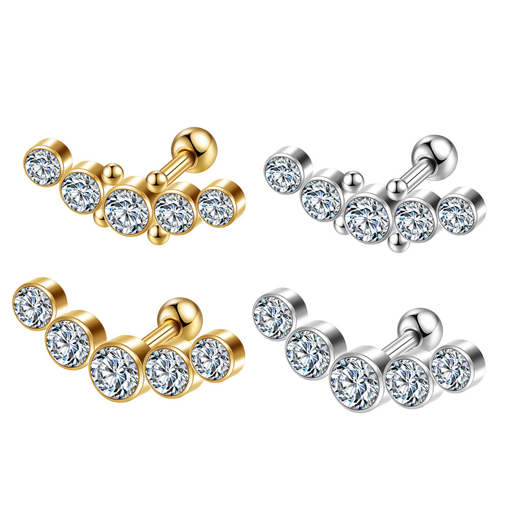 Piercing Minibarbell Aço Cirúrgico 5 Pedras Strass | Helix, Flat, Conch, Tragus, Lóbulo e Outros Helix Piercing Umbigo Tragus Aço Cirúrgico