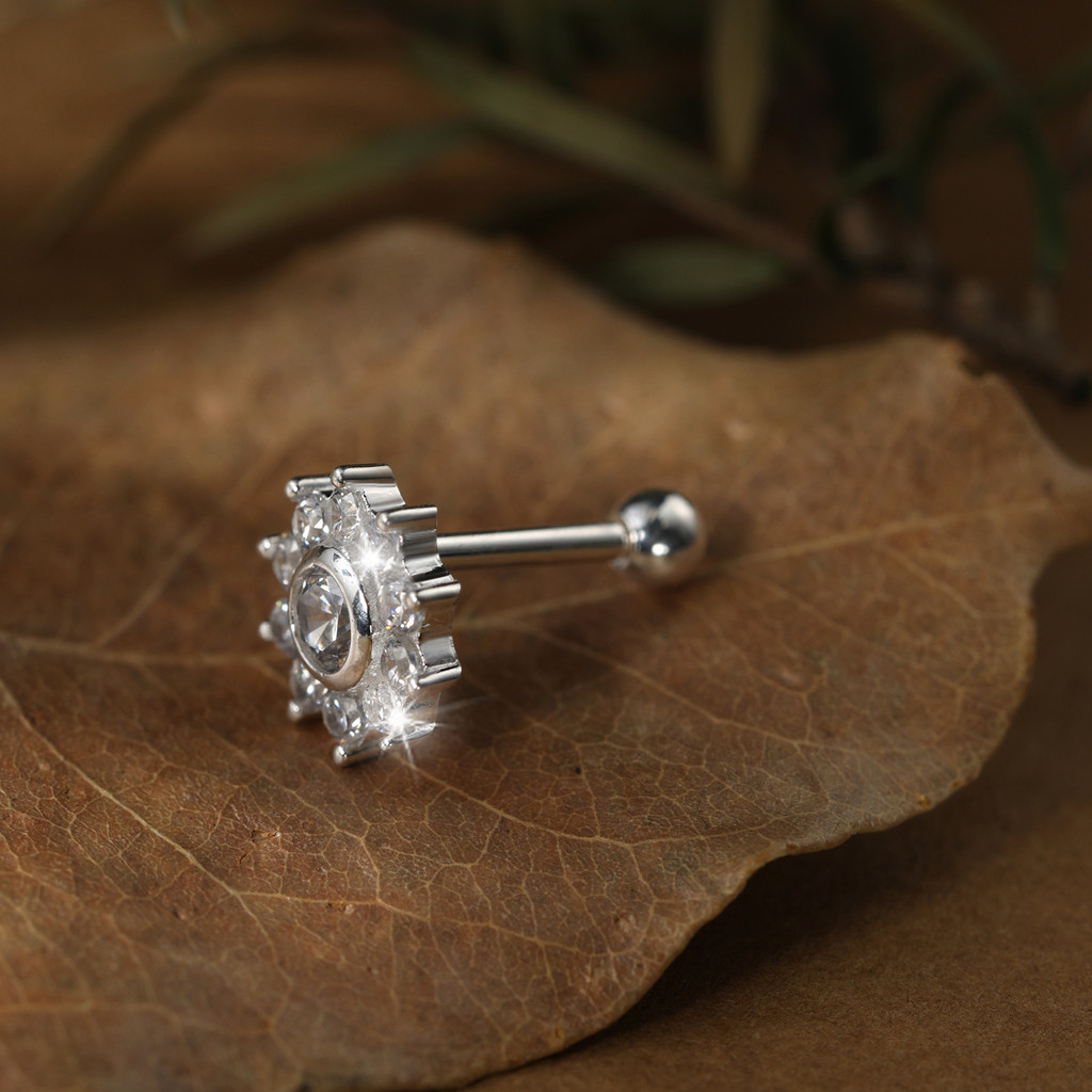Piercing Minibarbell Prata 925 Flor Zircônia Cravejada Labret Helix Tragus Conch Nariz Boca-Medusa De Orelha