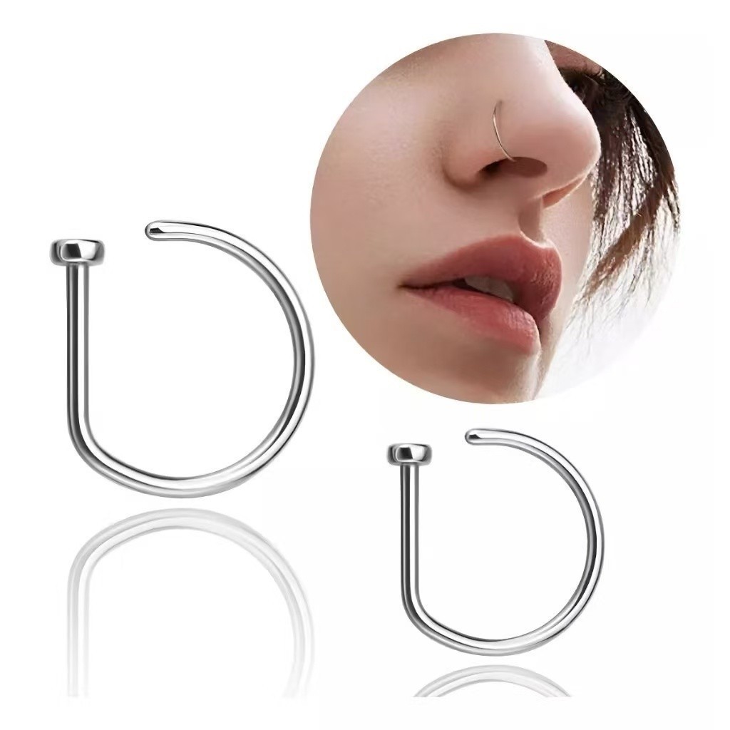 O TITÂNIO é mais forte, leve e resistente a corrosão do que o aço inoxidável. Apresenta maior biocompatibilidade do que outros metais, como ouro, prata e aço cirúrgico. É livre de níquel, não causa reações na pele ou alergias. Body Piercing 100% Titânio - Hipoalergênico - Argola DRING D RING para Nariz Opções de cores: Natural (Prateado) / Dourado (PVD) Tamanhos: Espessura: 0.8mm Diâmetro: 6/8/10mm
