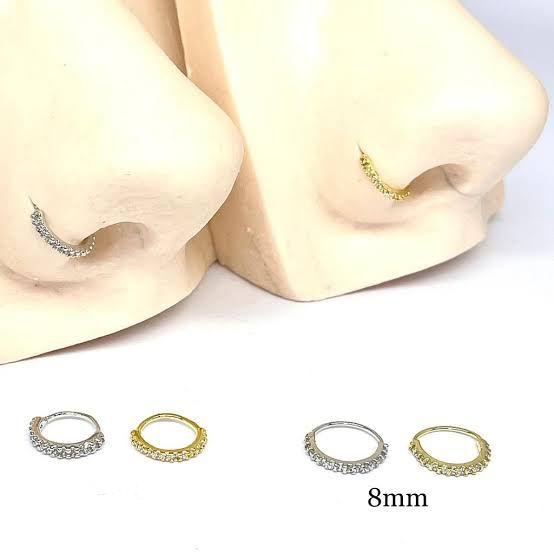 Atenção, selecione a configuração desejada corretamente antes da compra, não conseguimos modificar pedidos. 1 Unidade Piercing De Orelha Nariz Cartilagem Argola - Argola 8mm - Espessura da Haste: 0,8 mm - Material: Ródio - Pedras: Zircônias Brancas - Abertura por torção - Excelente Qualidade * Atenção: Cuidado ao manusear !!! O produto é frágil e deve ser manuseado com delicadeza PRODUTO A PRONTA ENTREGA.