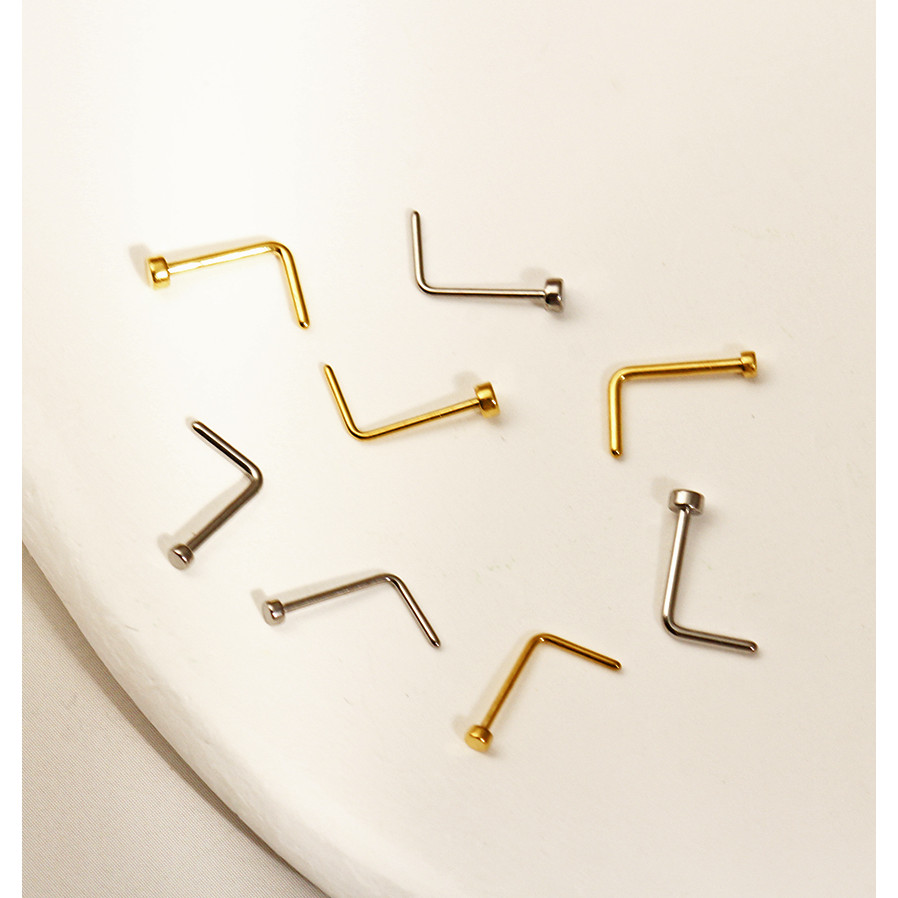 Piercing Nostril Formato L Titânio Liso | Piercing de Nariz Dourado Ponto De Luz | Aba Nasal