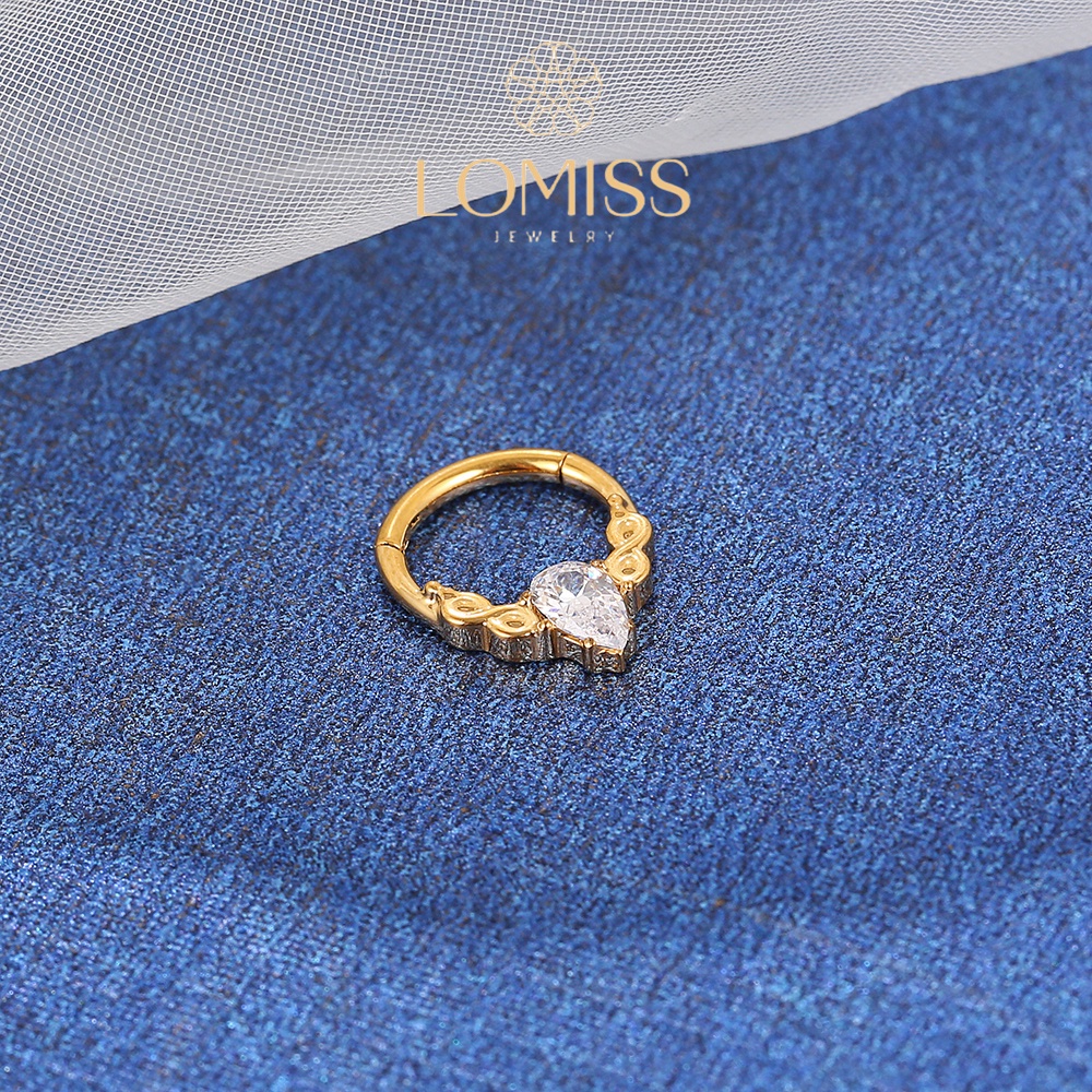Piercing Orelha Argola Titânio Clik Detalhada Zircônia Gota《Lomiss semijoias》