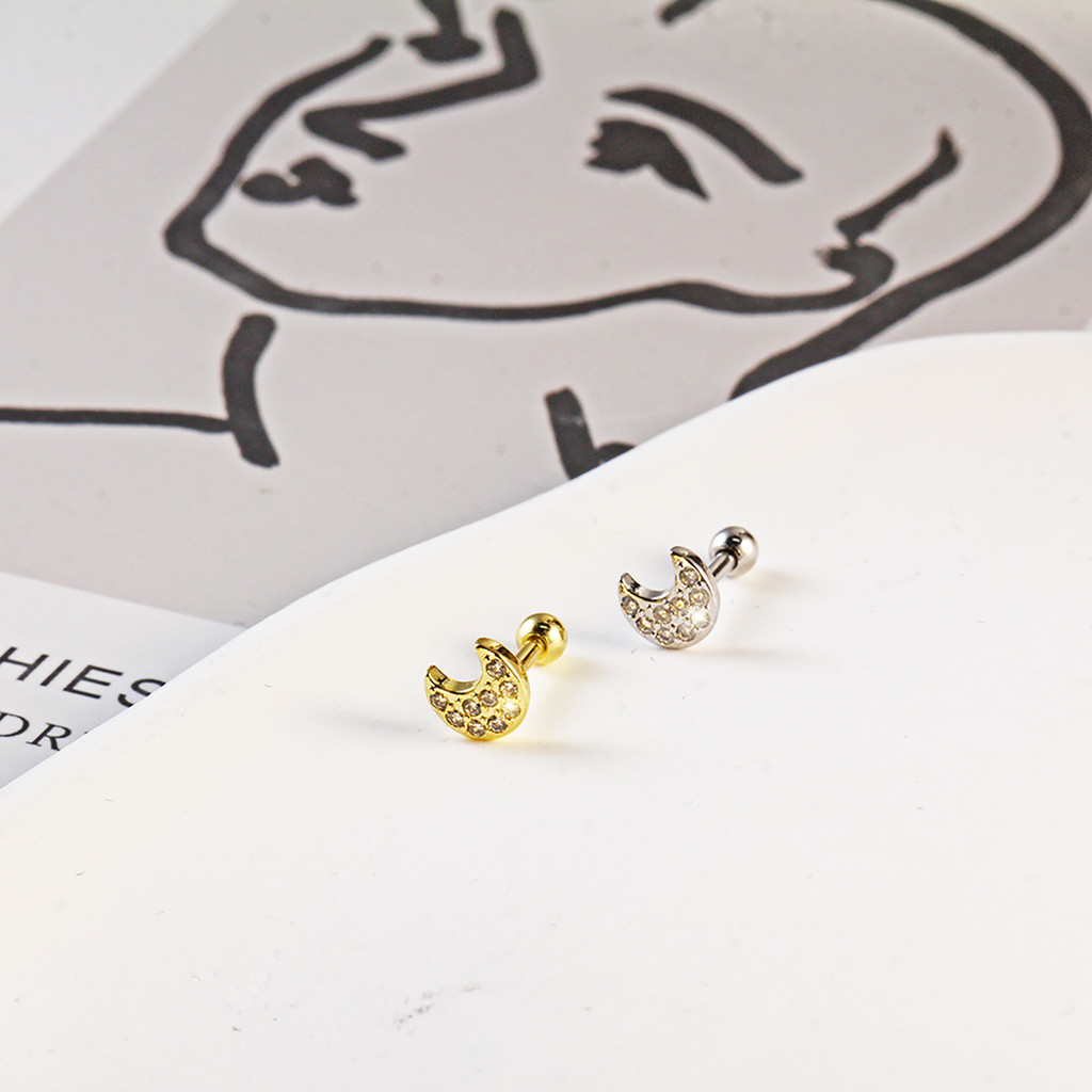 Piercing Orelha Conch Minibarbell Lua 9 Zircônia Cravejado Cobre / Aço - Cartilagem Helix Trágus Lóbulo Labret Nariz