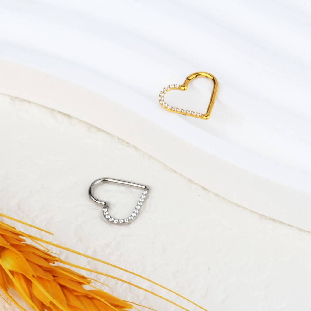 Piercing Orelha Coração Argola Aço Cirúrgico Pvd Zircônia Cravejada Piercing Daith Hélix