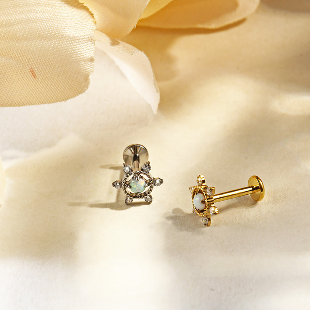 Piercing Orelha Helix Tragus Labret Conch Titânio Com 6 Zircônia Flor Com Pedra Opala lateral Boca Nariz Para Lábios
