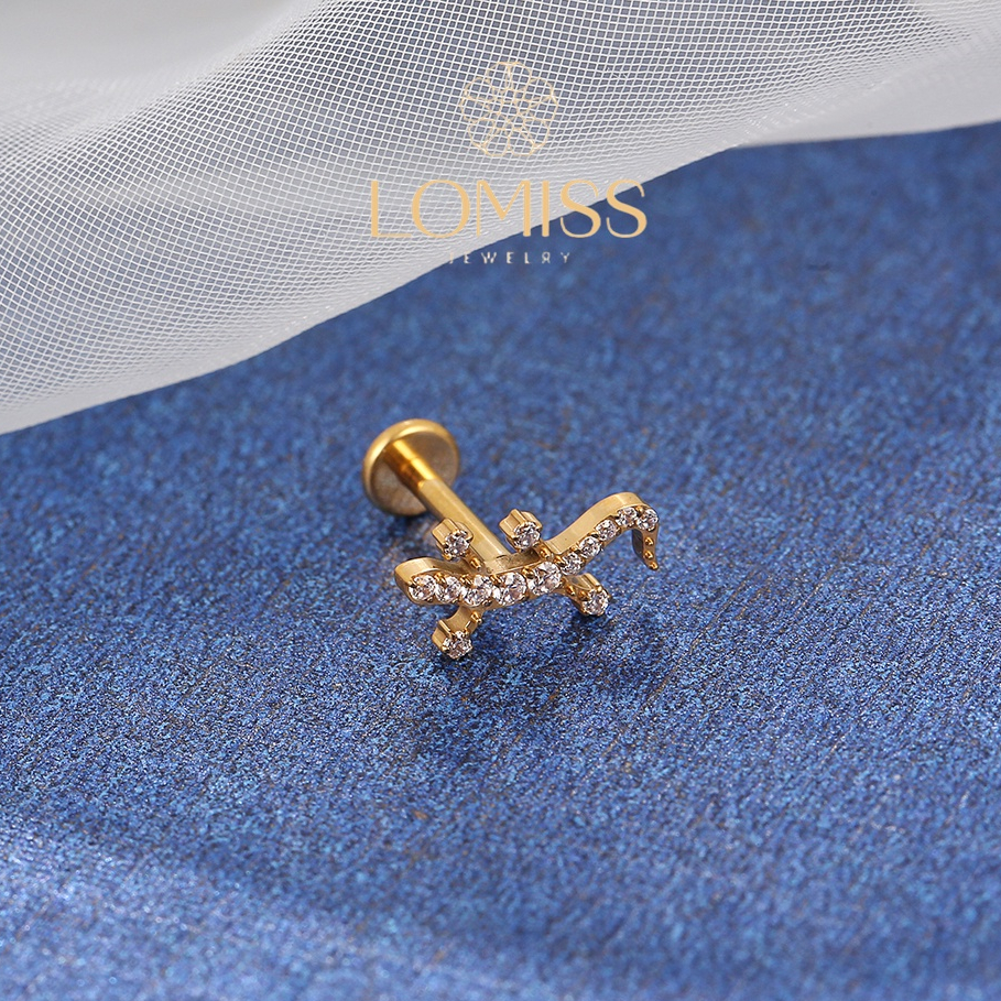 Piercing Orelha Labret Titânio Lagarto Zircônia《Lomiss semijoias》