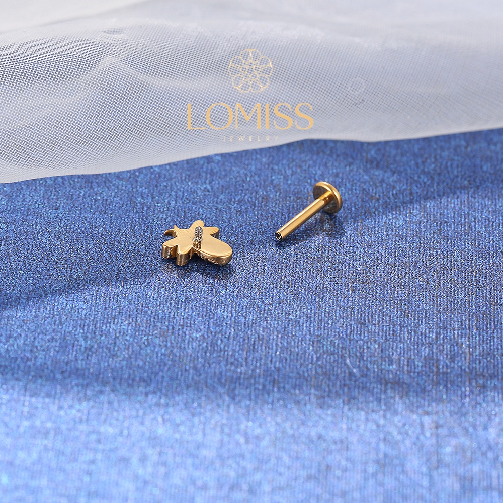 Piercing Orelha Labret Titânio Pvd Abelha Zircônia Lomiss piercing