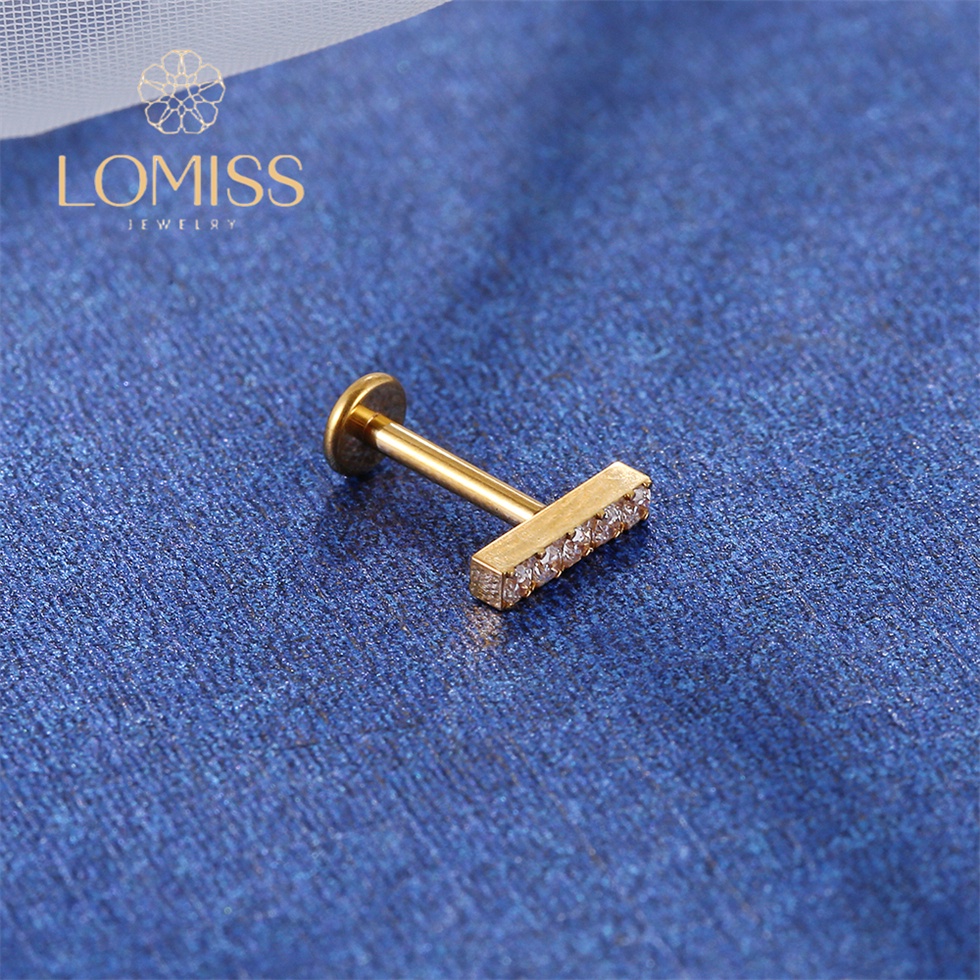 Piercing Orelha Labret Titânio pvd Barra Zircônia Grande《Lomiss piercing》