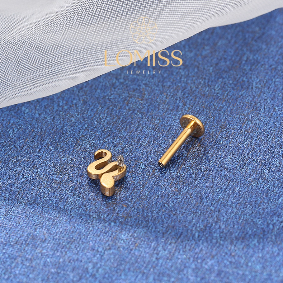 Piercing Orelha Labret Titânio PVD Cobra Zircônia Lomiss semijoias
