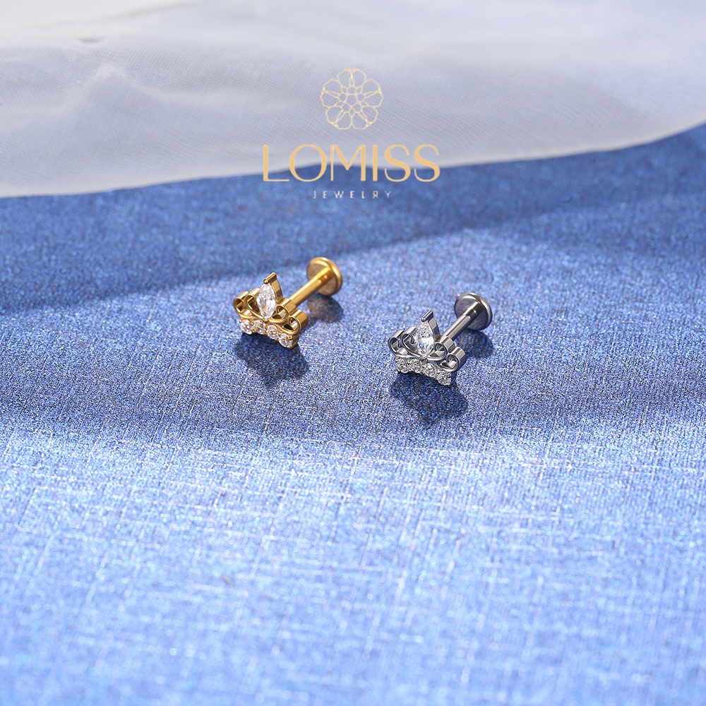 Piercing Orelha Labret Titânio PVD Coroa Zircônia Lomiss piercing