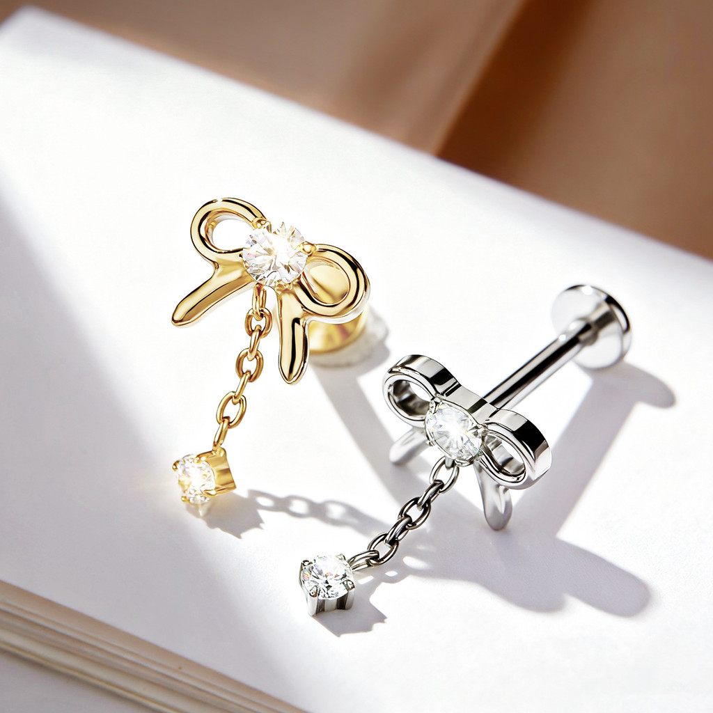 Piercing Orelha Labret Titânio Pvd Laço Com Pingente de Zircônias Brinco Helix Tragus Conch Nariz Body Piercing