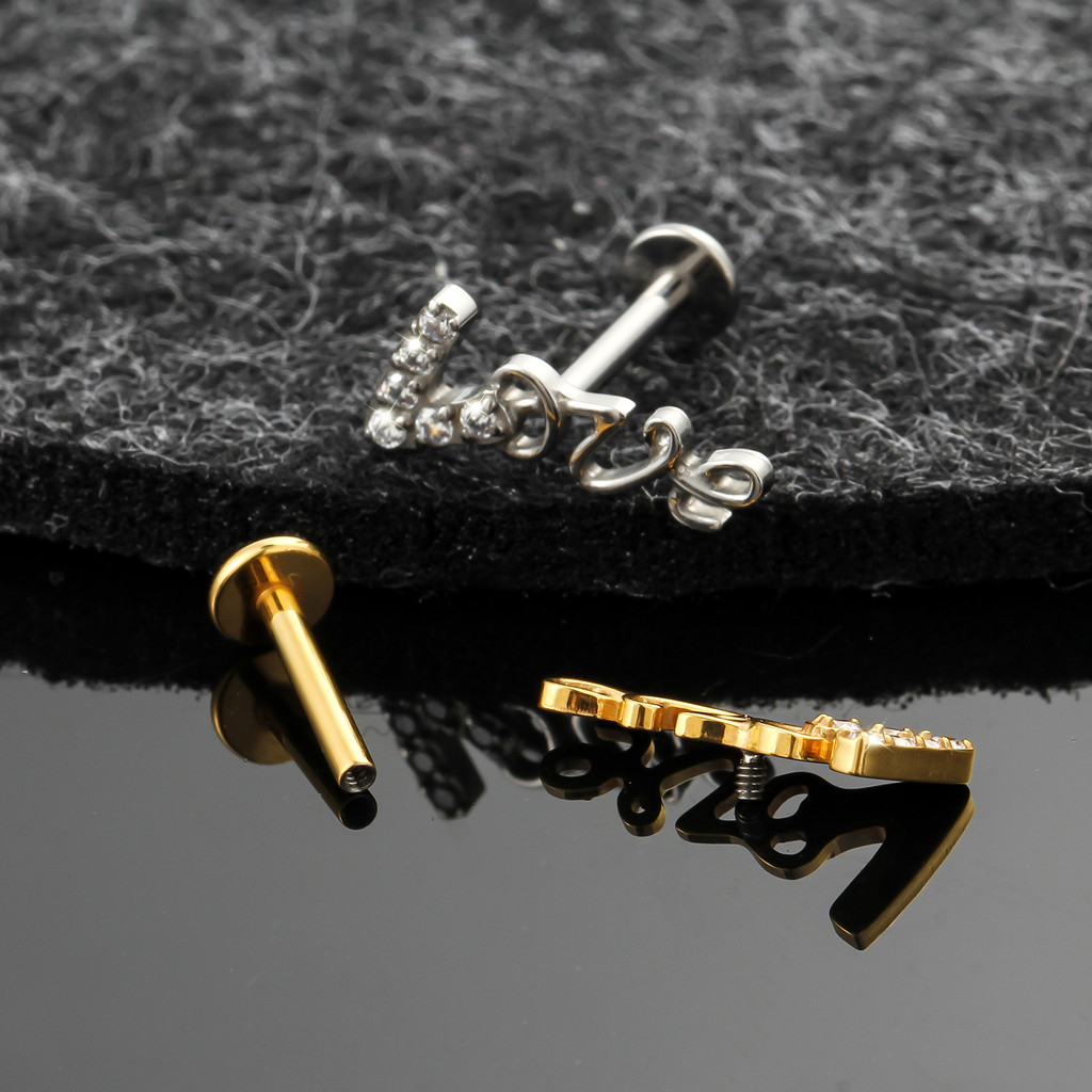 Piercing Orelha Labret Titânio Zircônias Cravejado LOVE Helix Tragus Conch Boca Nariz Daith