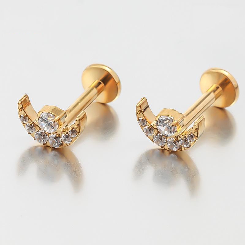 Piercing Orelha Lua Labret Titânio Zircônias Cravejadas Helix, Tragus, Conch, Nariz, Boca