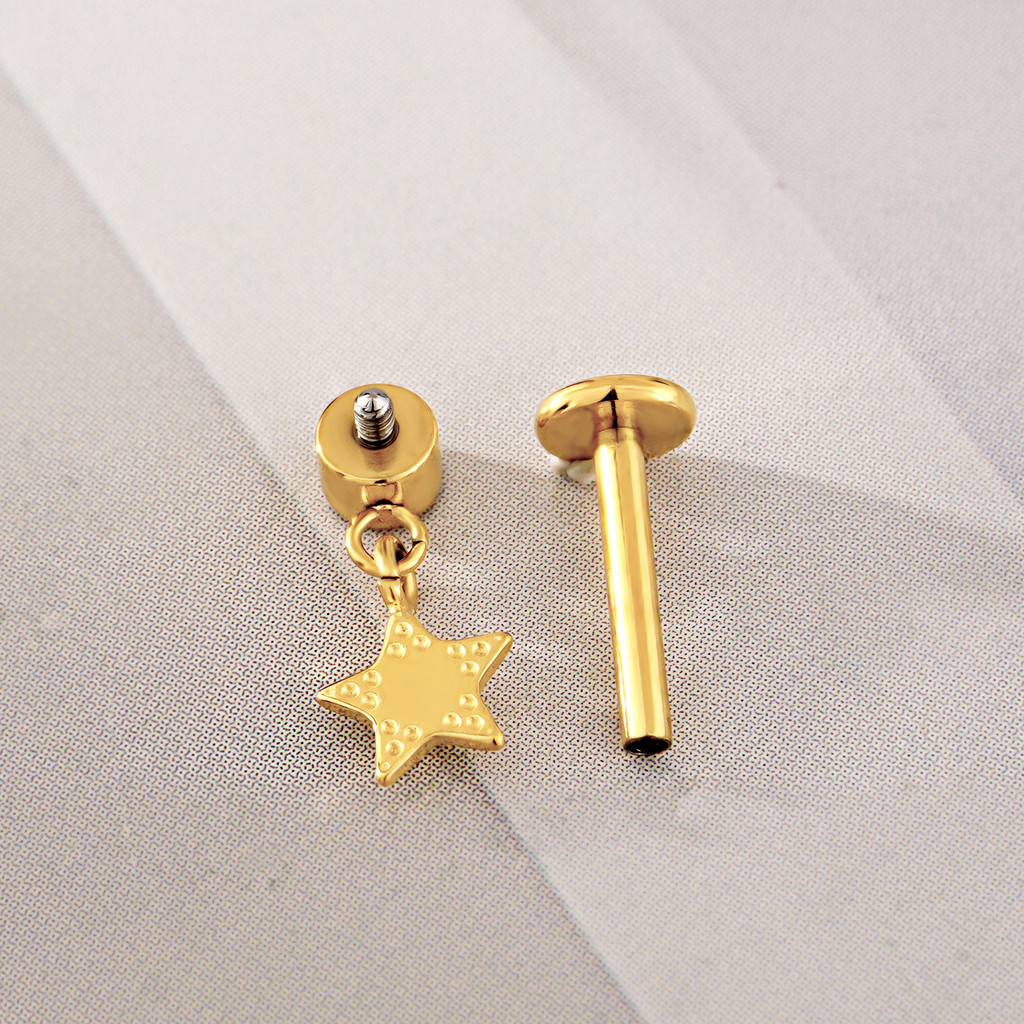 Piercing Orelha Minibarbell Aço Cirúrgico Zircônia Com Pingente Estrela Para Labret Brinco Piercing Labial Nariz