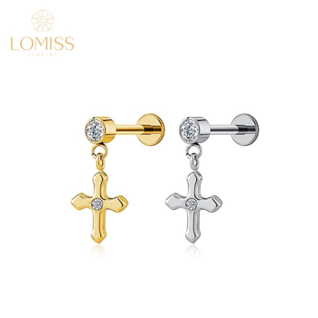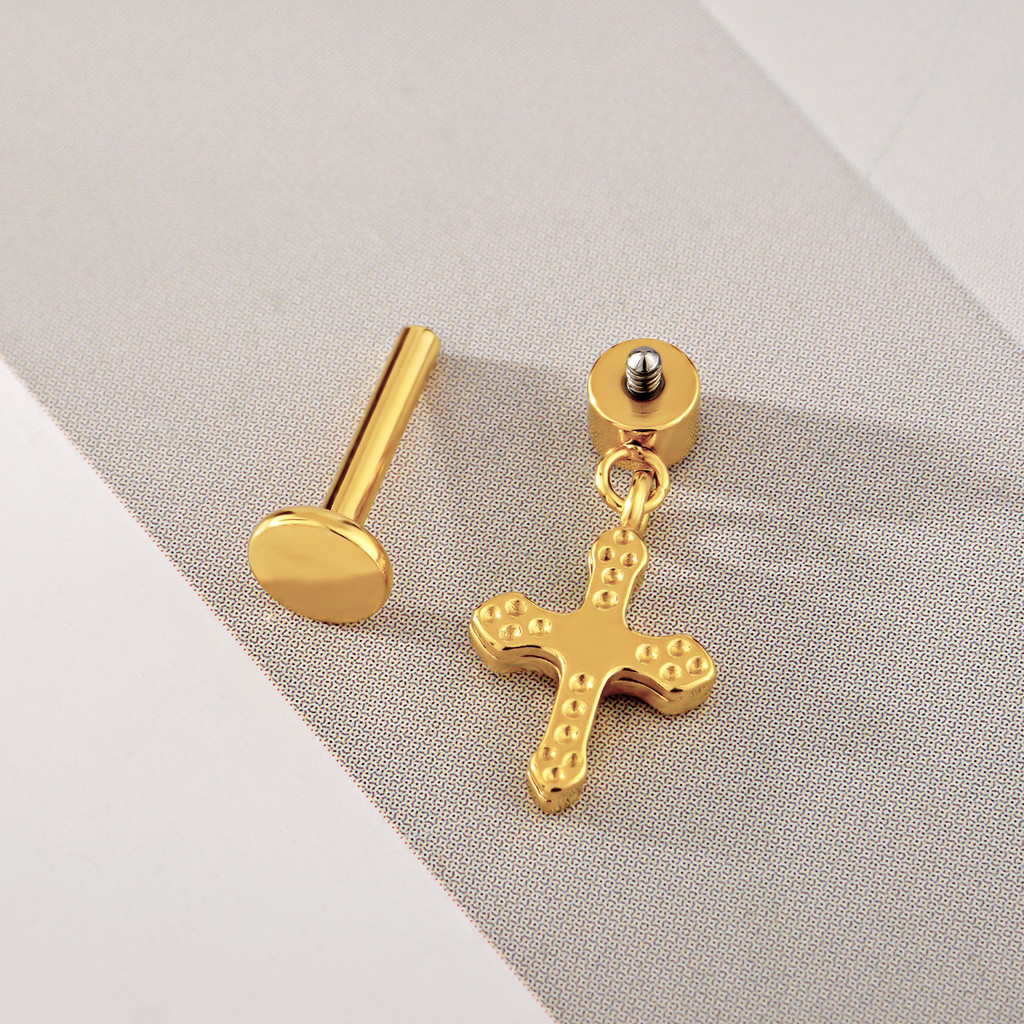 Piercing Orelha Minibarbell Aço Cirúrgico Zircônias Com Pingente Cruz Labret Tragus Helix Conch Nariz Boca Antialérgico