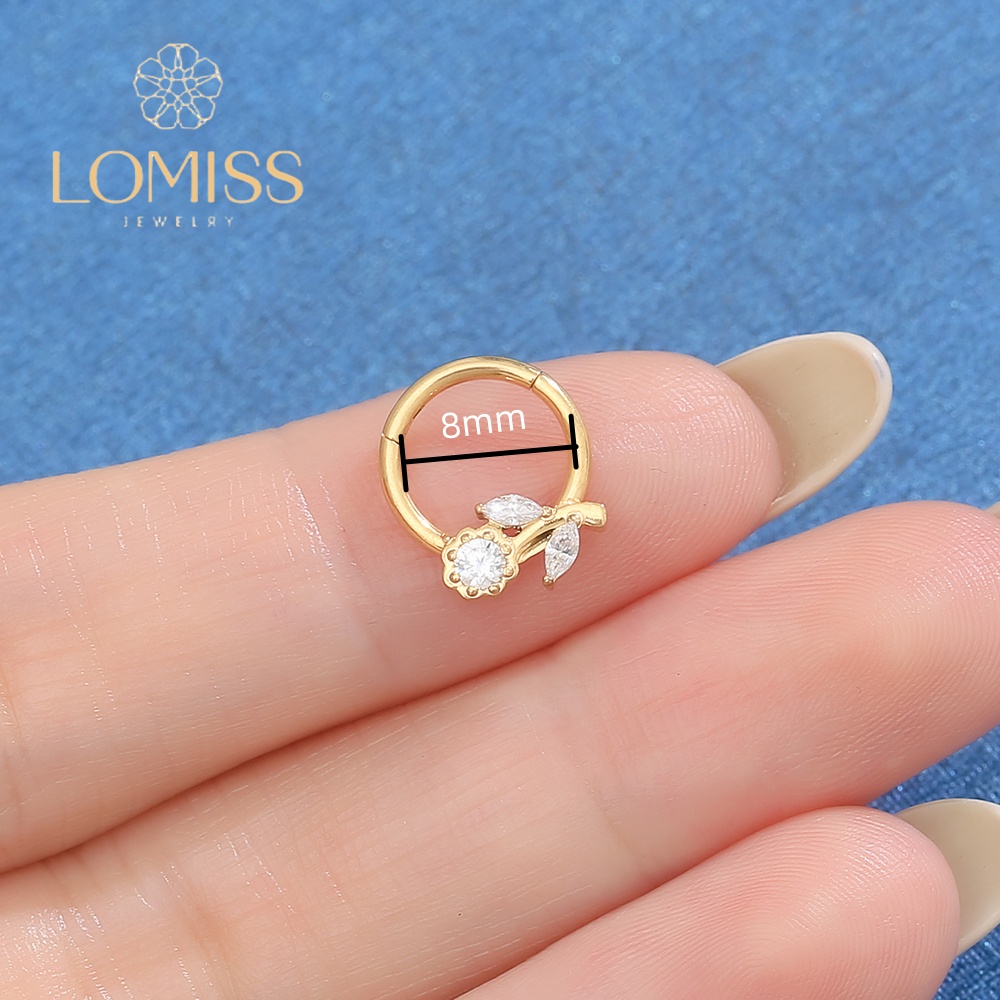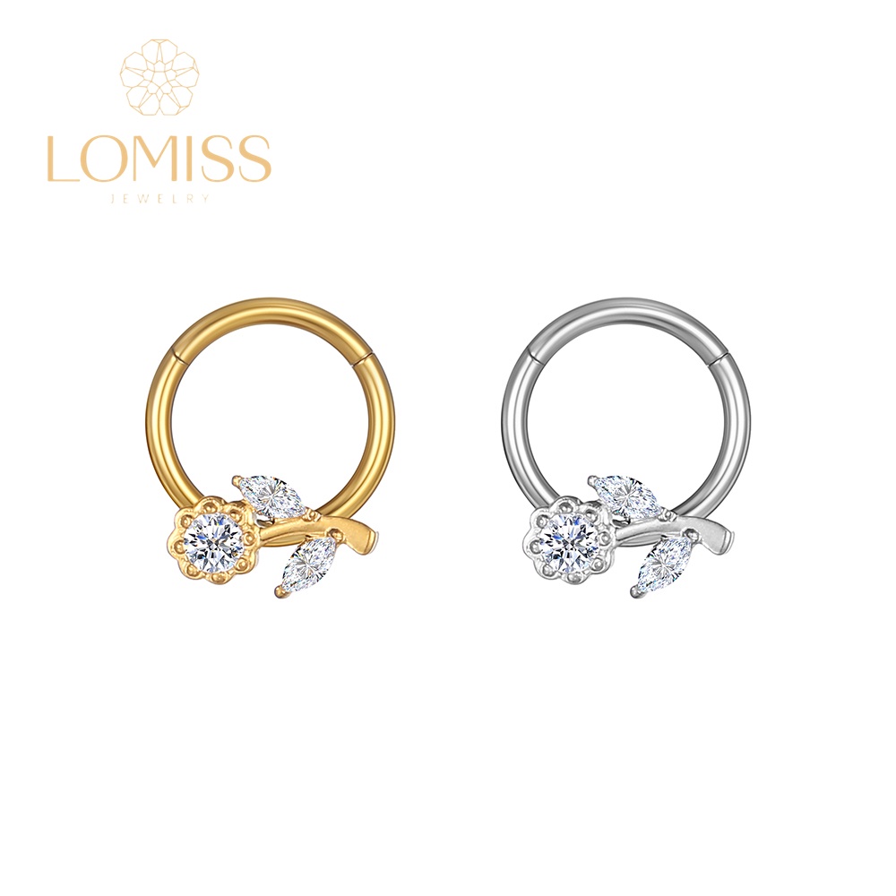 Piercing Orelha Nariz Argola Aço Cirúrgico PVD Clik Flor Zircônia《Lomiss semijoias》