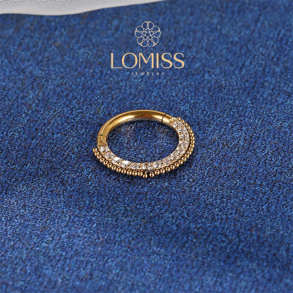 Piercing Orelha Nariz Argola Clik Aço Cirúrgico PVD Indiano Zircônia Lateral