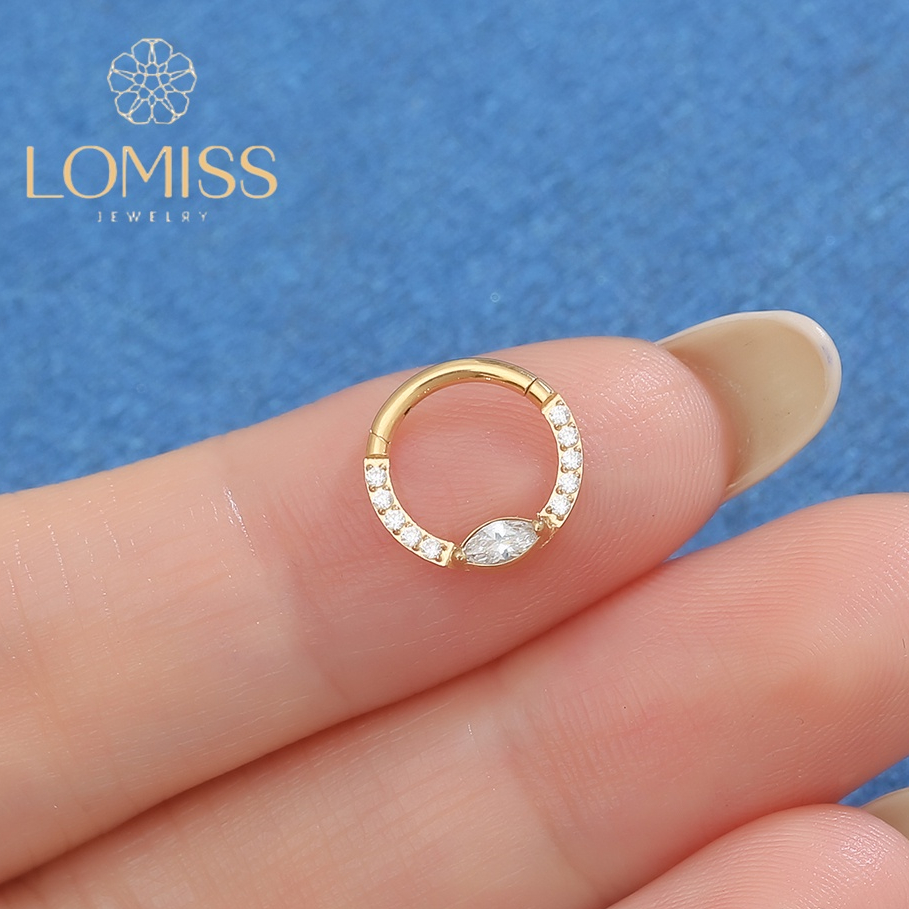 Piercing Orelha Nariz Argola Clik Aço Cirúrgico pvd Zircônia Cravejada《Lomiss semijoias》