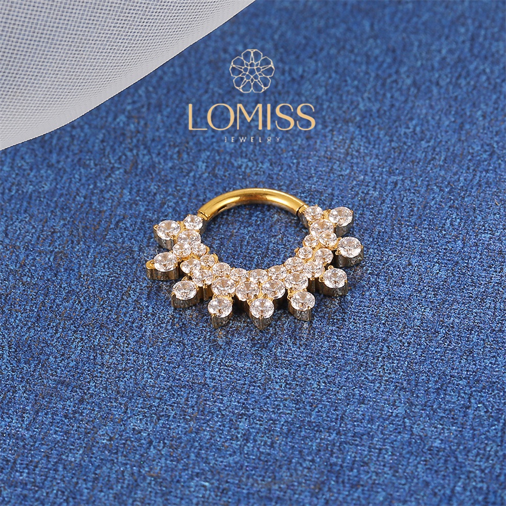 💖 💖 🥳 🥳 Bem-vindo a 《LOMISS Piercing》🥳 🥳 💖 💖 🎊🎊👍👍Somos uma grande empresa de piercing. O endereço está localizado em São Paulo.Todos os produtos da loja são de alta qualidade. 👍👍🎊🎊 🚚 🚚🚀 🚀 Temos uma grande quantidade de estoque. Enviaremos seu pedido em até 48 horas após o pagamento. 🚀 🚀🚚 🚚 🎉🎉🎫 🎫Clique em ""SEGUIR"" e receba vouchers de desconto exclusivos.🎫 🎫🎉🎉 ---------------------------------------------------------------------------------------------------------------- ⭐⭐O produto é 100% titânio puro. Absolutamente sem alergias!! ⭐⭐Características:Resistente à corrosão, alta resistência, Inibição de bactérias, não alergênico!tir você! - Espessura Da Haste: 1.2 mm - Diâmetro da argola: 8mm - Material: TitÂnio G23 - Pedra: Zircônia - Fecho: Clik - Podendo ser Usado: Septril, Rook, Conch, Nariz, Daith - Quantidade: 1 unidade Lembrando que: Cada pessoa tem formato de corpo / local de aplicação (mais pra dentro/fora), então varia com tamanho de jóia. Fácil Colocação e Remoção *PVD - É uma tecnologia utilizada para a deposição de filmes metálicos finos sobre diversos tipos de substratos. O processo é realizado, sob vácuo, onde os metais a serem depositados são evaporados. É particularmente indicado para aqueles produtos inovadores e de qualidade que necessitam atender elevados padrões e permite ainda obter uma vasta gama de cores. - Elevada resistência ao desgaste e abrasão; - Resistência ao suor e transpiração humanos; - Hipoalergênicos. ✚ Como cuidar de suas joias novas ✚ As joias corporais, independentemente do material, requerem cuidados redobrados, pois o material pode penetrar na carne. Recomendamos o seguinte. - Sempre remova as joias durante esportes com suor intenso, natação e banho, pois qualquer coisa, desde água, óleo, cloro, perfume e suor, pode danificar as joias. - Se for necessário limpar, use sempre água morna e sabão neutro. Nunca use álcool ou quaisquer produtos químicos, pois podem causar descoloração ou outras reações adversas às joias. Certifique-se de secar bem o corpo e as joias antes de reinserir. Certifique-se de usar um pano macio e não abrasivo para evitar riscar o metal. - Se você tiver alguma reação a joias folheadas (como colares, pulseiras, anéis, etc.), não recomendamos nenhuma joia folheada, pois você pode ter uma reação semelhante. - Recomendamos que você guarde suas joias em uma bolsa com zíper quando não estiver em uso.