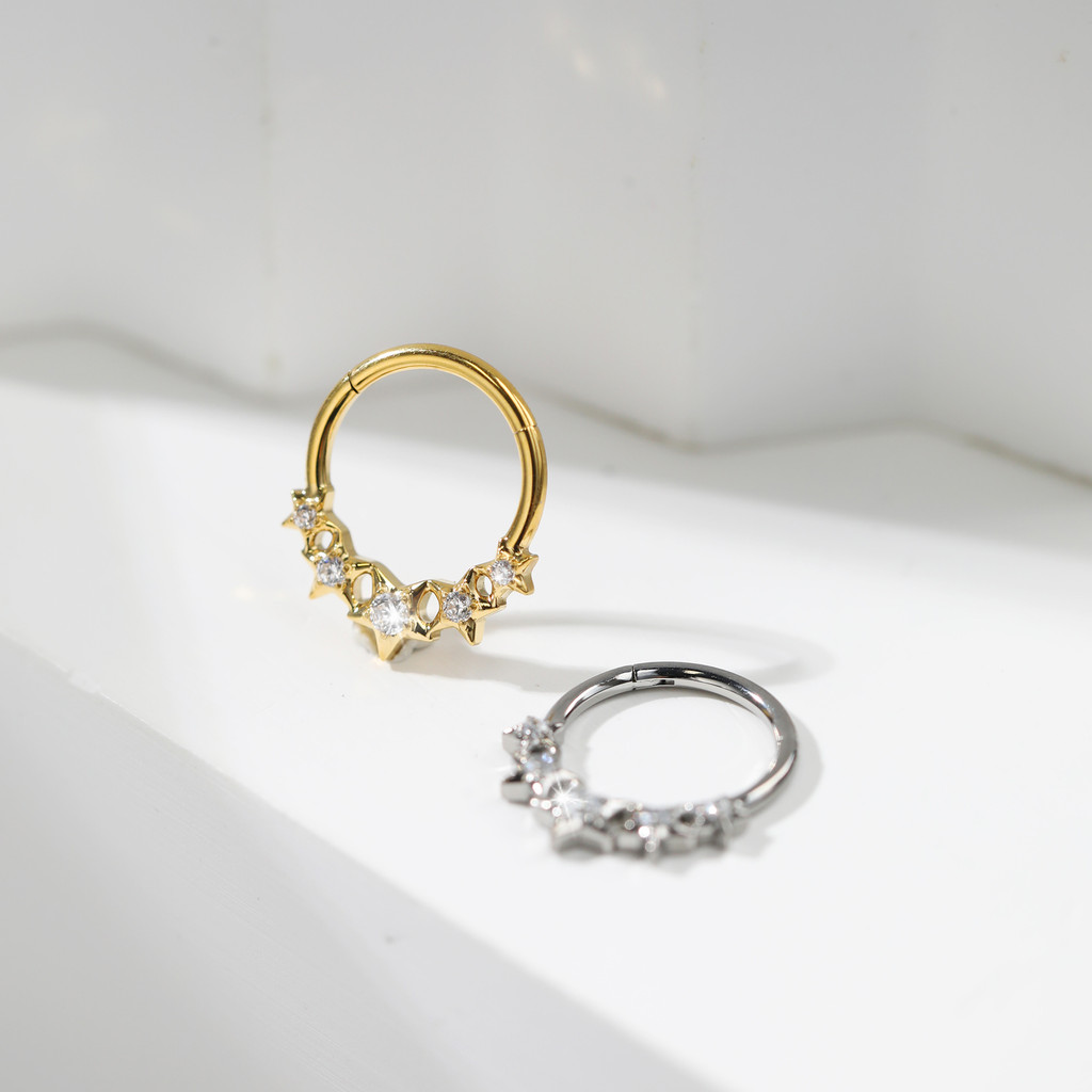 Piercing Septo Argola Titânio Estrelas Com Zircônia Septril Helix Nariz Daith Rook Conch