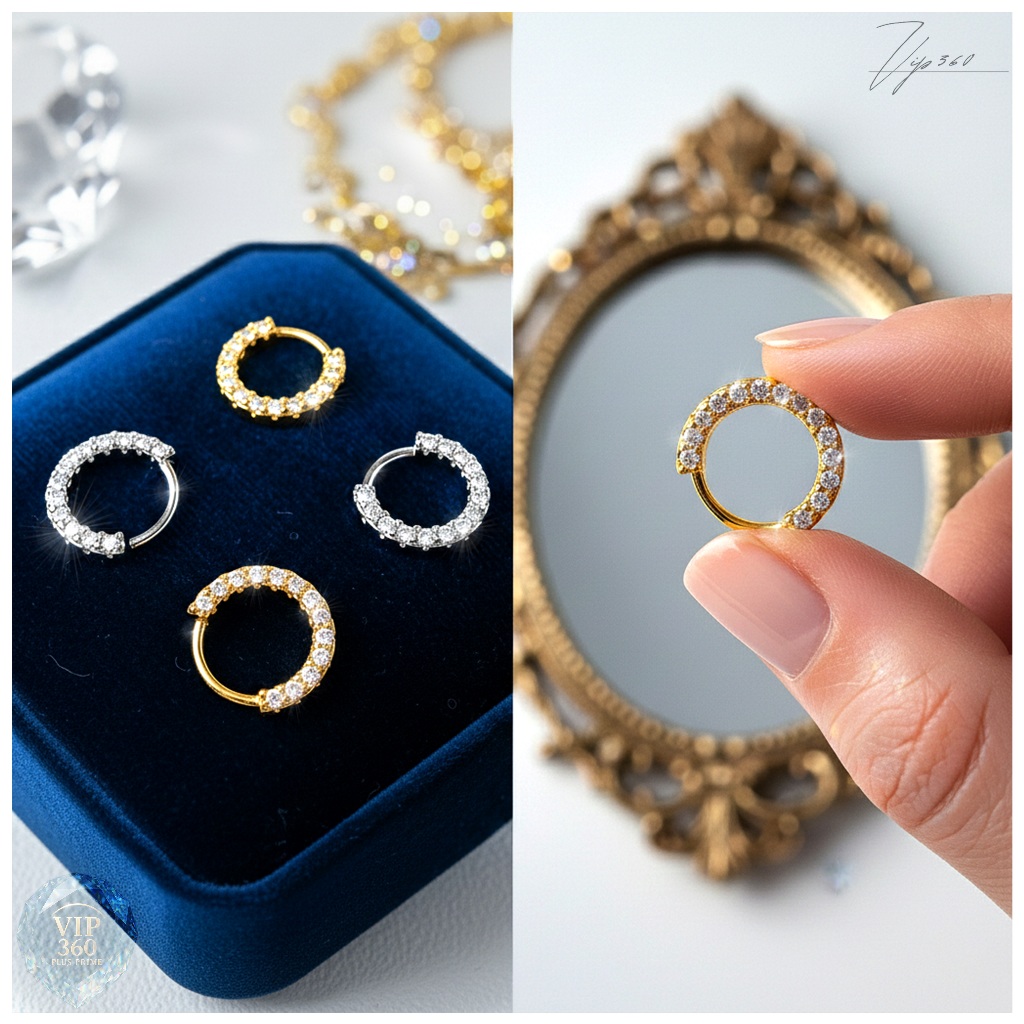 Piercing Septo Helix Daith Argola Cravejada Strass Zircônia 6mm/8mm - Brilho Premium
