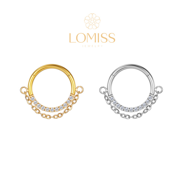 Piercing Septo Rook Conch Nariz Argola Aço Cirúrgico PVD Segmento Articulado Zircônia Lateral Corrente