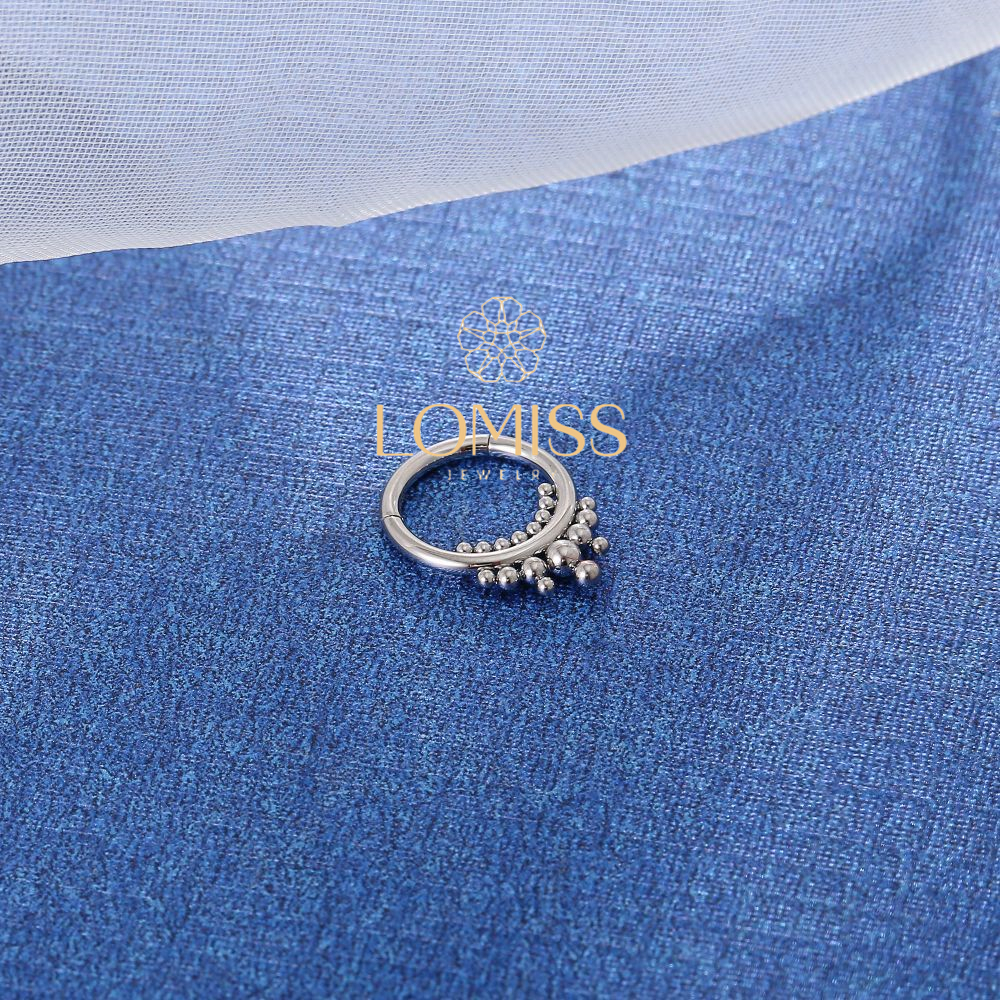 💖 💖 🥳 🥳 Bem-vindo a 《LOMISS Piercing》🥳 🥳 💖 💖 🎊🎊👍👍Somos uma grande empresa de piercing. O endereço está localizado em São Paulo.Todos os produtos da loja são de alta qualidade. 👍👍🎊🎊 🚚 🚚🚀 🚀 Temos uma grande quantidade de estoque. Enviaremos seu pedido em até 48 horas após o pagamento. 🚀 🚀🚚 🚚 🎉🎉🎫 🎫Clique em ""SEGUIR"" e receba vouchers de desconto exclusivos.🎫 🎫🎉🎉 ---------------------------------------------------------------------------------------------------------------- ⭐⭐O produto é 100% titânio puro. Absolutamente sem alergias!! ⭐⭐Características:Resistente à corrosão, alta resistência, Inibição de bactérias, não alergênico! - Espessura Da Haste: 1.2 mm - Diâmetro da argola: 8mm - Material: Titânio - Fecho: Segmento Articulado - Podendo ser Usado: Septril, Rook, Conch, Nariz - Quantidade: 1 unidade ✚ Como cuidar de suas joias novas ✚ As joias corporais, independentemente do material, requerem cuidados redobrados, pois o material pode penetrar na carne. Recomendamos o seguinte. - Sempre remova as joias durante esportes com suor intenso, natação e banho, pois qualquer coisa, desde água, óleo, cloro, perfume e suor, pode danificar as joias. - Se for necessário limpar, use sempre água morna e sabão neutro. Nunca use álcool ou quaisquer produtos químicos, pois podem causar descoloração ou outras reações adversas às joias. Certifique-se de secar bem o corpo e as joias antes de reinserir. Certifique-se de usar um pano macio e não abrasivo para evitar riscar o metal. - Se você tiver alguma reação a joias folheadas (como colares, pulseiras, anéis, etc.), não recomendamos nenhuma joia folheada, pois você pode ter uma reação semelhante. - Recomendamos que você guarde suas joias em uma bolsa com zíper quando não estiver em uso.